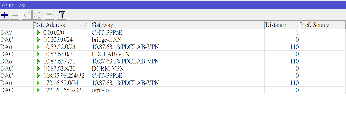 上圖是設定完成後Route List的結果