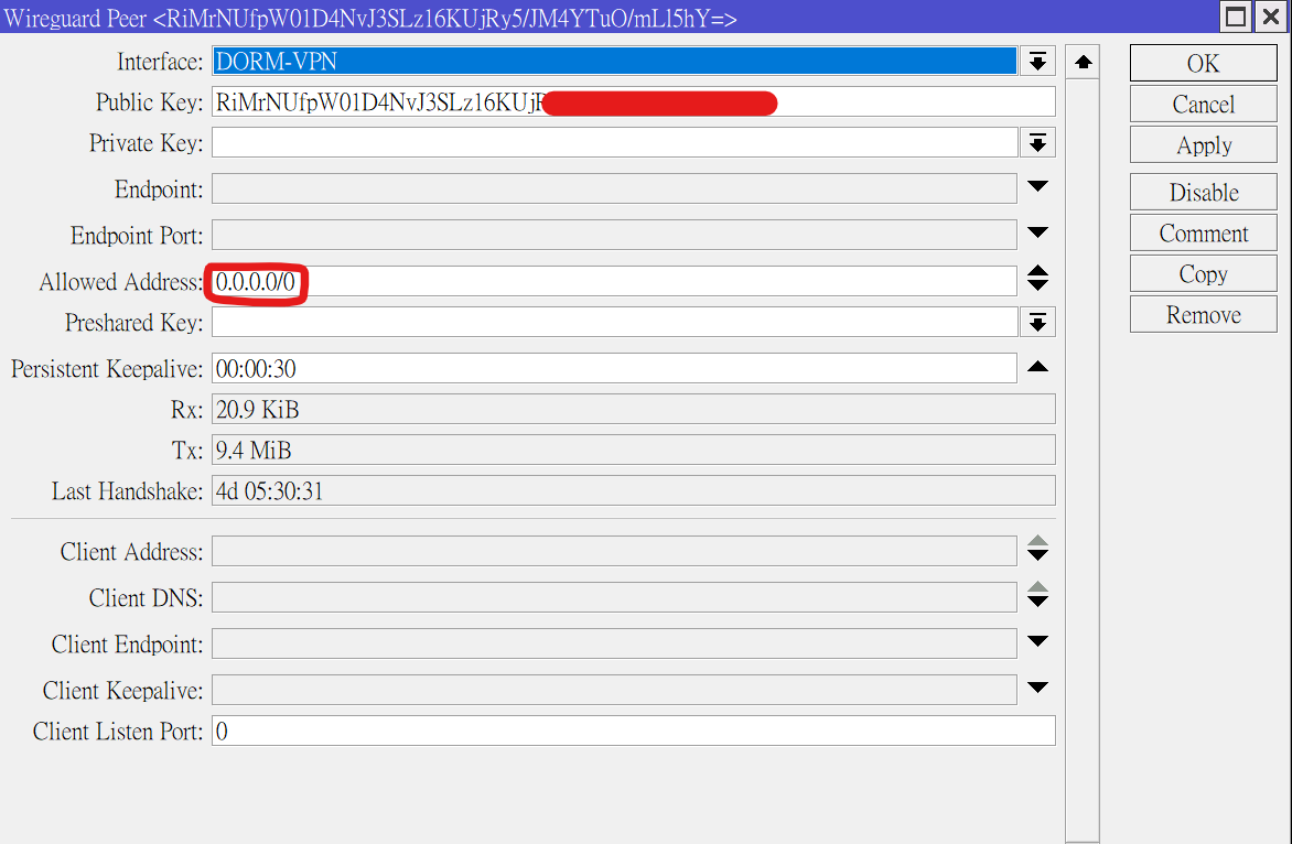 上圖是WireGuard Peer設定示範