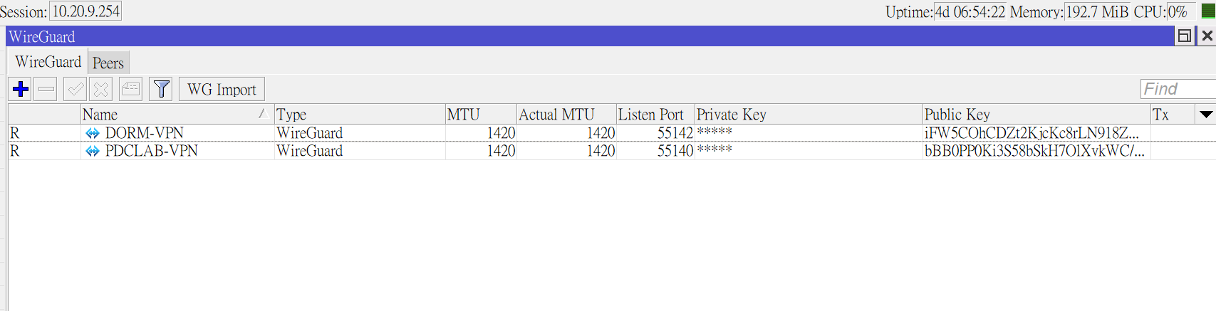 上圖是家中路由器的WireGuard介面示範