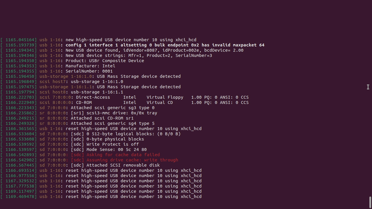 但是不出意外馬上就要出意外了,透過 IDER (IDE Redirection) 掛映像後進入 Ubuntu 安裝程序準備開開心心開始重灌時,陷入了一個坑內,Ubuntu 一直不斷重複 usb x-xx: reset high-speed USB device number x using xhci_hcd 的提示,無法順利進入安裝程式...