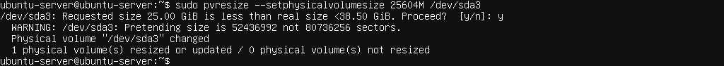 e.g sudo lvresize --resizefs --size 25G /dev/mapper/ubuntu--vg-ubuntu--lv